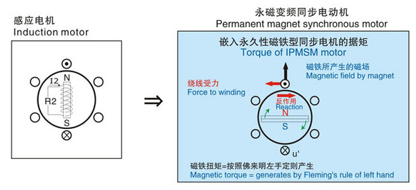 其構(gòu)造為內(nèi)嵌永久性磁鐵,無二次繞線,所以可將其損失控制在較低水平。