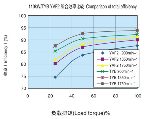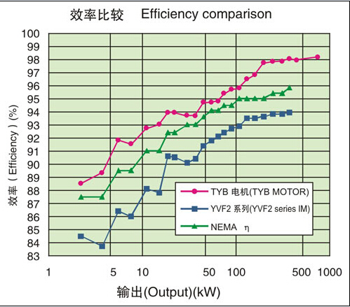 效率比高效電機NEMA標準值約提高3%左右,比本公司YVF2系列變頻器專用IM約提高5%左右。
