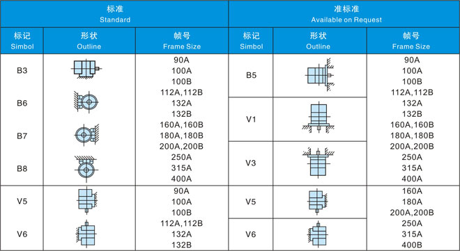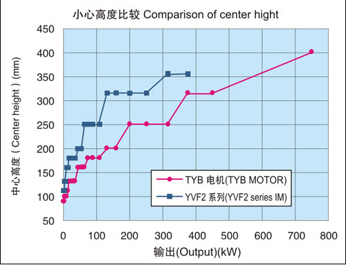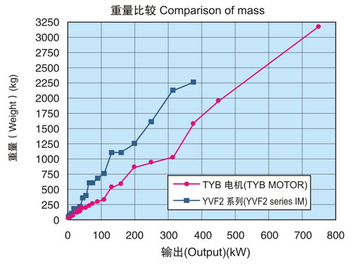 在同一輸出下中心高度比本公司YVF2系列變頻器專用IM下降2格。另外,電機重量也有大幅度減輕。(與本公司YVF2系列變壓器專用IM相比減輕32-57%