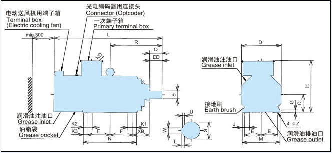 注3) 375kW及450kW基底速度1500 min-1的電機轉(zhuǎn)速范圍為1800~1500 min-1。而且,450kW基底速度1200 min-1的電機轉(zhuǎn)速范圍為1500-1200 min-1(★標記)。
