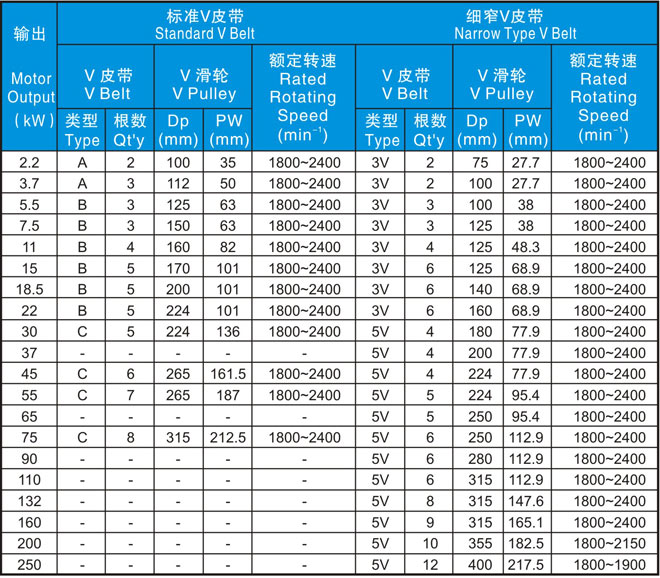 3.標準V皮帶、V滑輪適用表