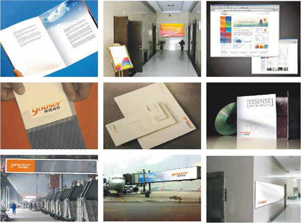 本部分展示了陜西有色的標志、輔助圖形、理念在實際中的應用,其中包括:企業(yè)畫冊、品牌文化手冊、員工培訓手冊、理念海報、明信片、邀請函、信紙、信封、名片、CD、包裝盒、室內(nèi)理念傳播、廠區(qū)理念傳播、戶外廣告、戶外理念海報、展覽展示、網(wǎng)站等。