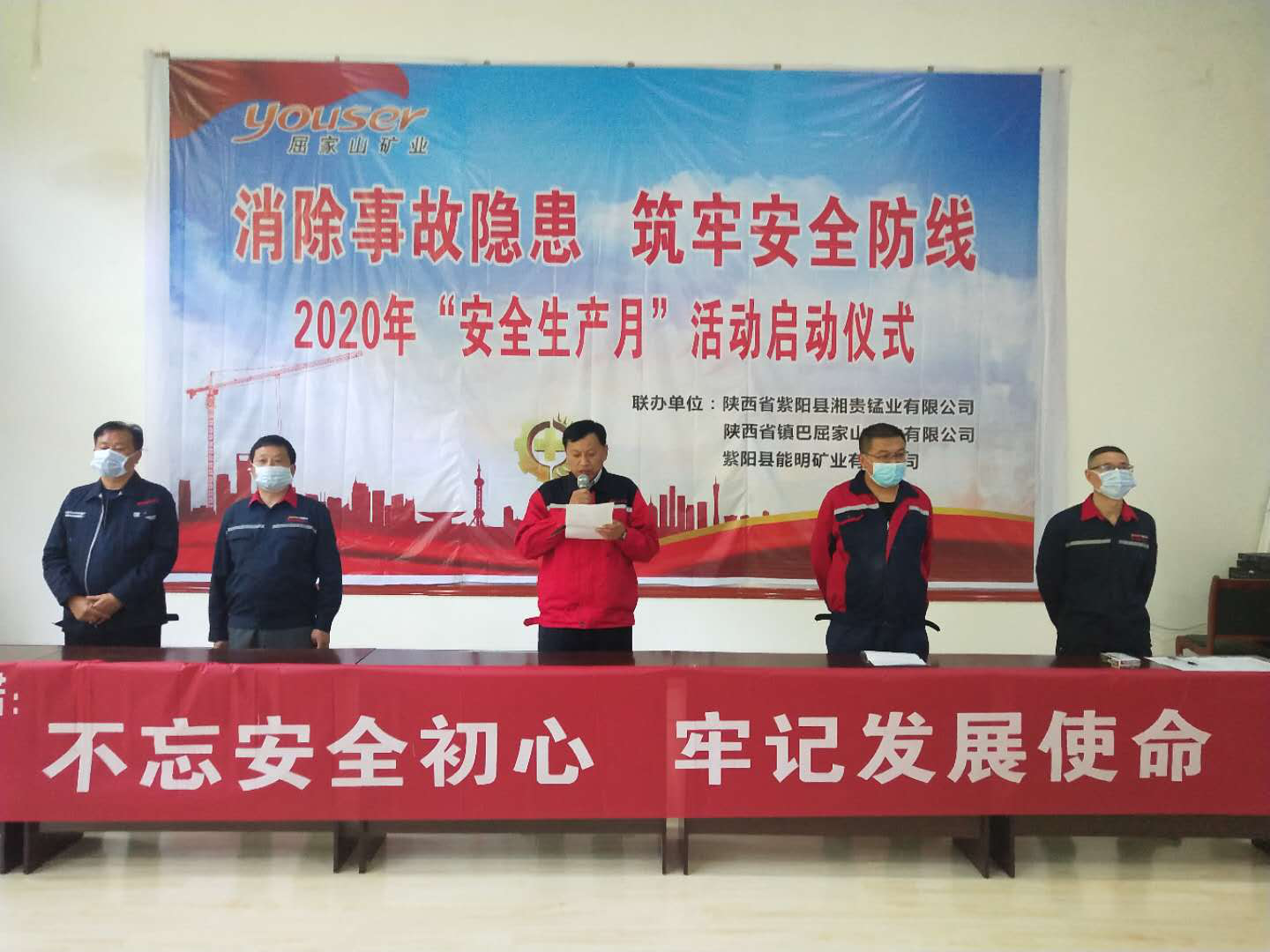 隨著疫情發展的有效遏制,各企業復工復產加快,安全隱患逐漸升高,安全形勢依舊嚴峻。為進一步增強安全生產意識,提升企業安全管理素質,緊緊圍繞國家“消除事故隱患、筑牢安全防線”主題,6月1日,冶礦集團權屬湘貴錳業、屈家山礦業、能明礦業聯合舉辦了2020年“安全生產月”活動啟動儀式。