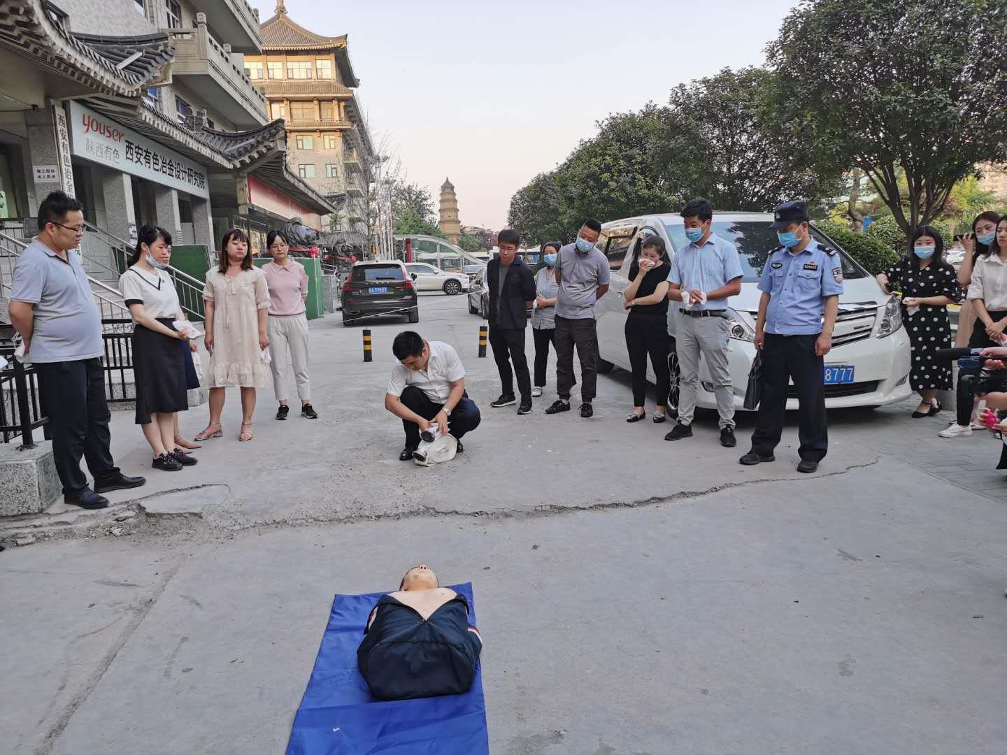 演練結束后,碑林區南大街派出所民警對大家進行了現場指導,組織員工開展規范使用滅火器和消防水帶拋灑及收帶工作培訓,并普及了火災中的急救知識。