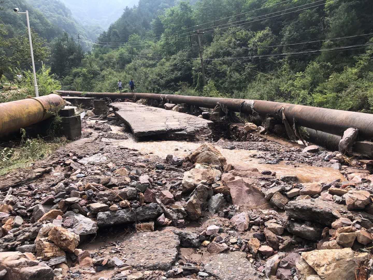 8月6日至9日,連續四天,李新寬累計徒步80余公里,對栗西尾礦庫、王家坪尾礦庫,以及道路沿線的路況、設施設備、輸送、回水、排洪、電力及監測等系統進行現場勘察。在那些天里,白天跑現場,晚上寫方案。為搶險搶修提供了切實可行的道路恢復方案、泥石流、滑坡體清理方案、管道設施等的搶險搶修方案。