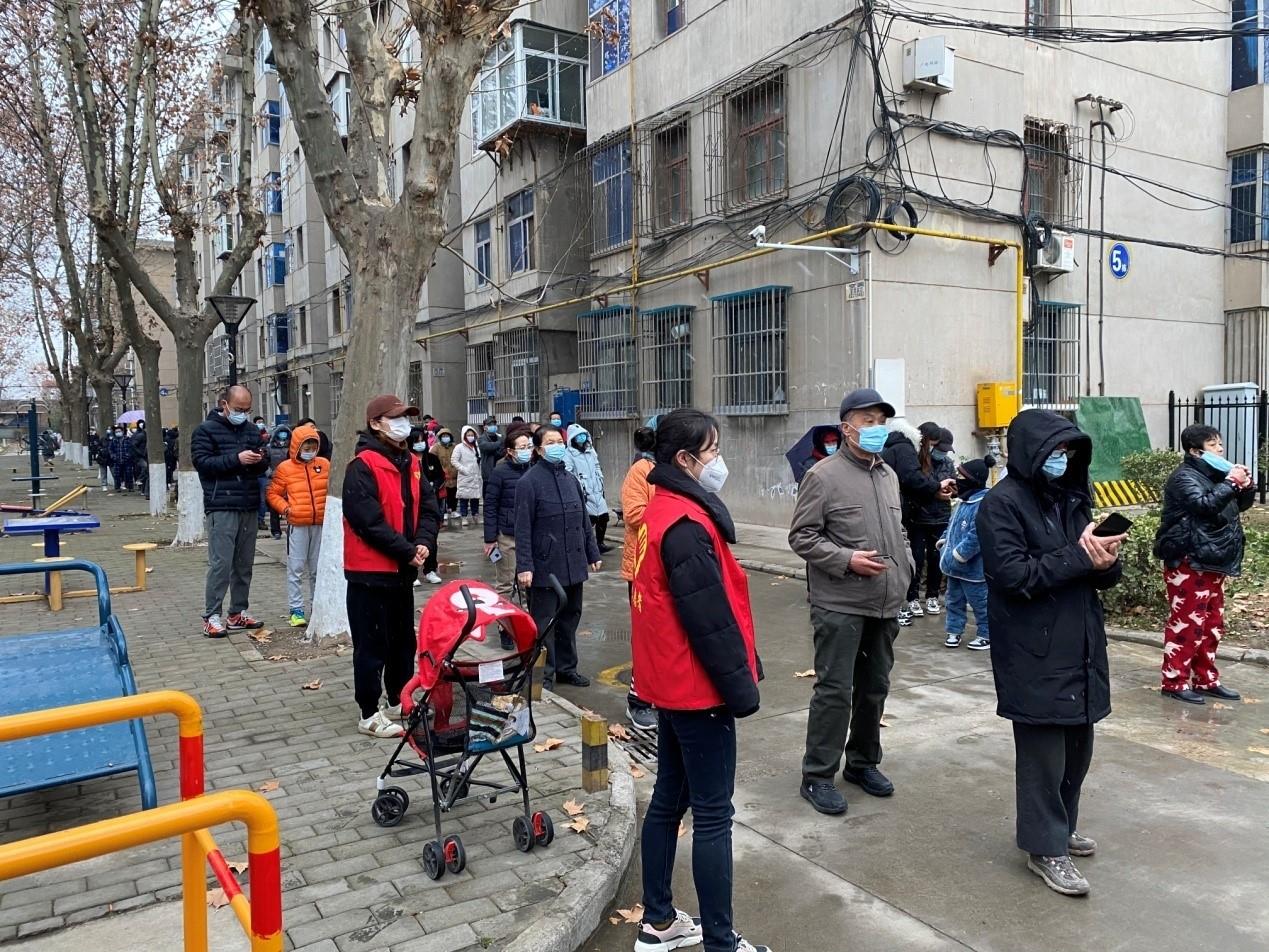 “請大家有序排隊,逐一掃碼、登記、做核酸,隔離期間不要出門。”在兩集團總部職工宿舍外,下沉一線的志愿者趙山順帶著社區醫護人員為隔離人員上門做核酸。他說:“我是入黨積極分子,就是要積極向黨組織靠攏,在疫情防控的關鍵時刻有所擔當。”