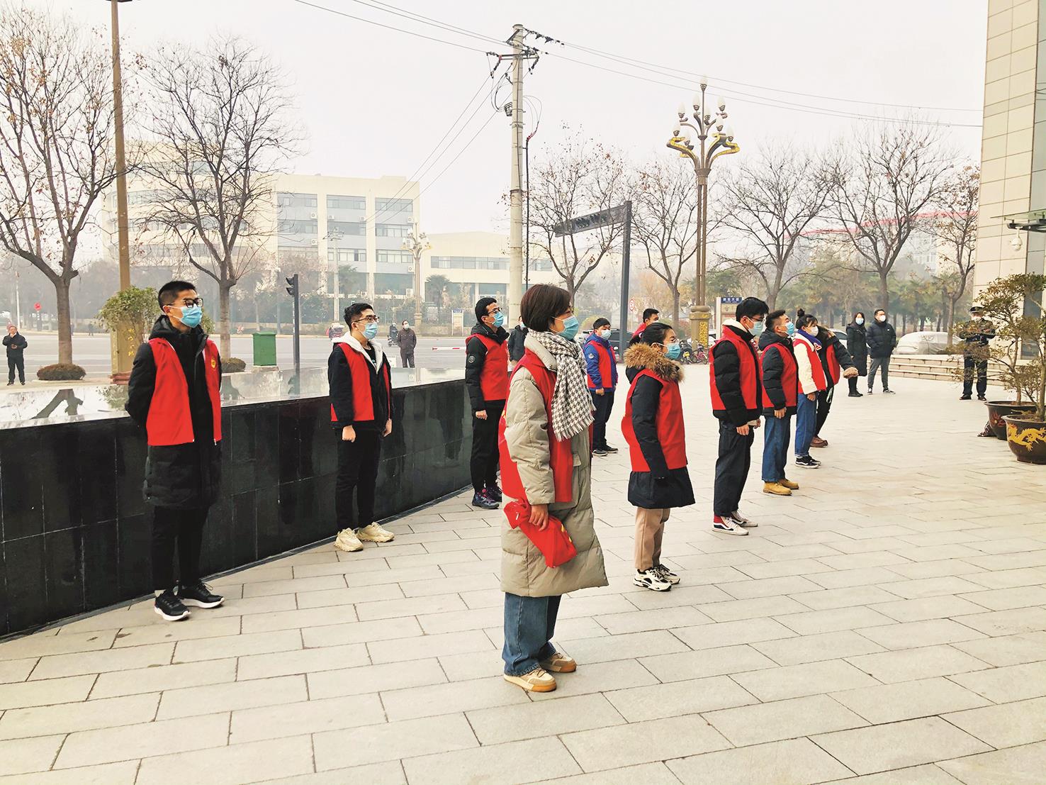 在公司總部所在的渭南金城大廈樓下的核酸檢測點,身著金鉬向陽花志愿者服裝的隊員們在寒風瑟瑟中提前布置現(xiàn)場、畫好隔離線、貼好站位貼、核對人員信息、維持排隊秩序、引導職工有序檢測、配合醫(yī)護人員采樣……用實際行動守護職工的生命健康。
