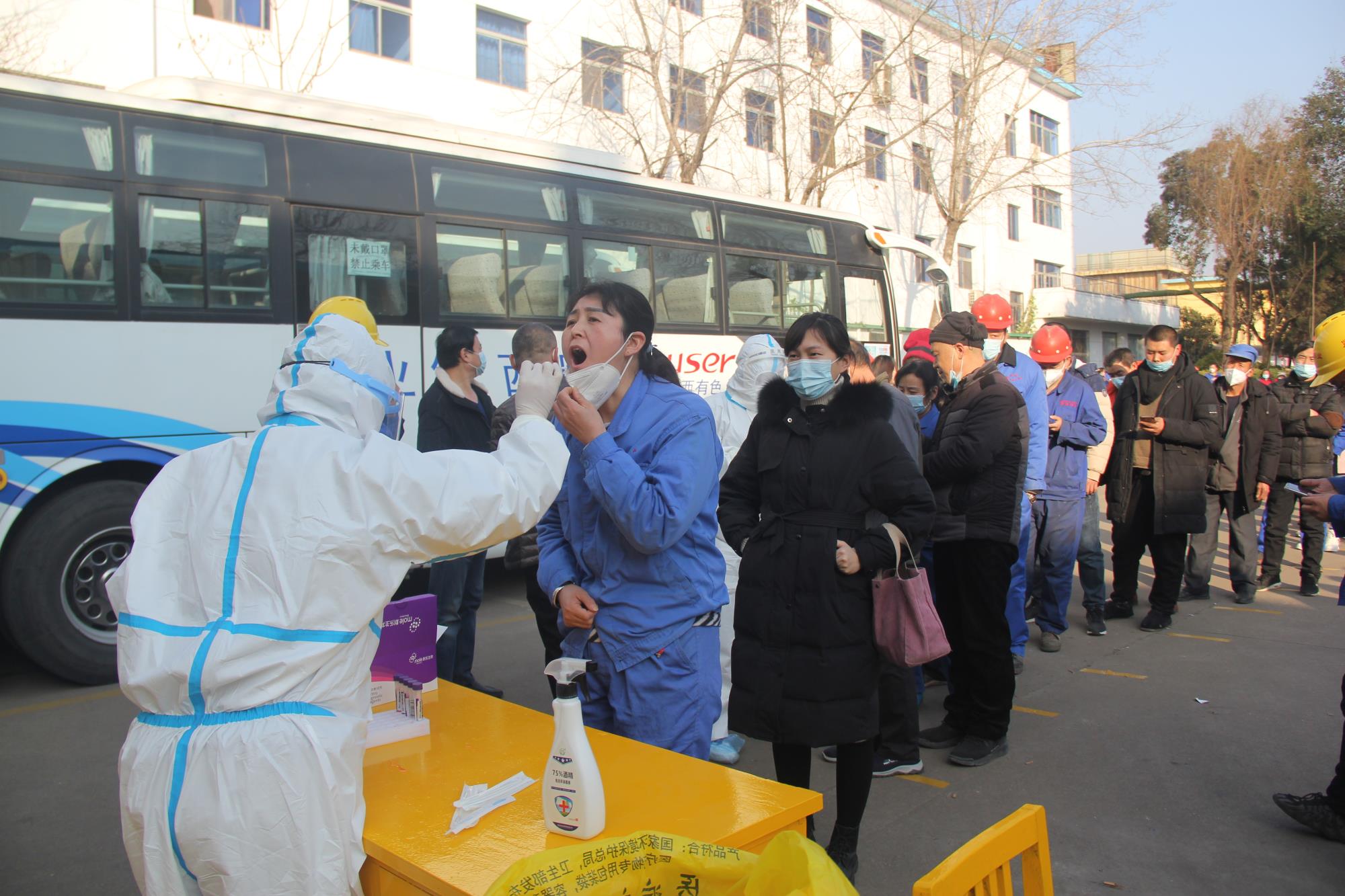 “請(qǐng)大家準(zhǔn)備好核酸采樣登記碼,戴好口罩,保持一米間隔線安全距離按順序排隊(duì)……”1月17日—18日,陜西鋅業(yè)公司開展全員核酸檢測(cè)工作。