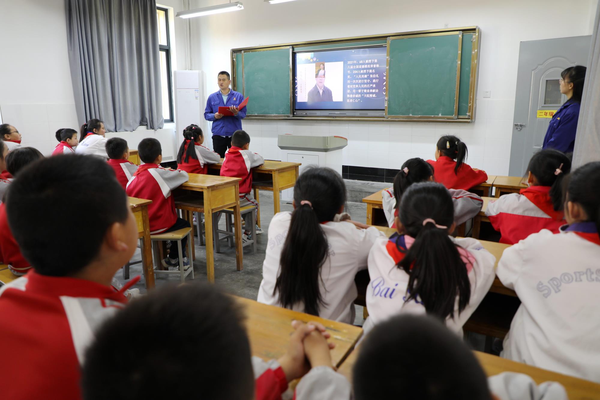 “大手拉小手 模范事跡進(jìn)校園”活動(dòng)過程中,志愿者們向小學(xué)生宣講“抗疫英雄”張伯禮、“時(shí)代楷模”張桂梅的事跡,以榜樣力量助力少年兒童健康成長。共同唱響《歌唱祖國》,攜手變身“礦區(qū)文明小衛(wèi)士”…… 志愿者與孩子們約定,要做有“家國情懷”的人。