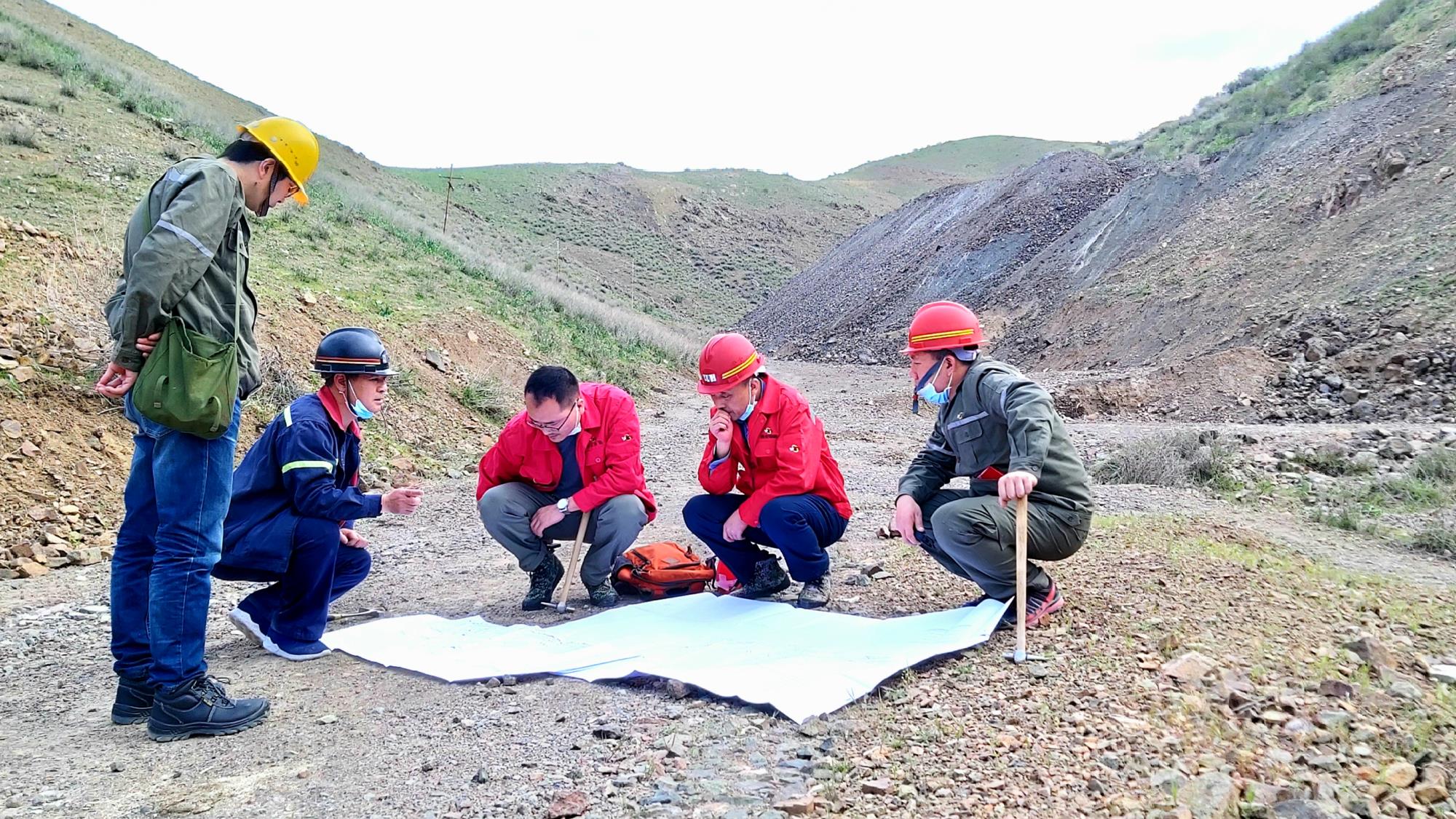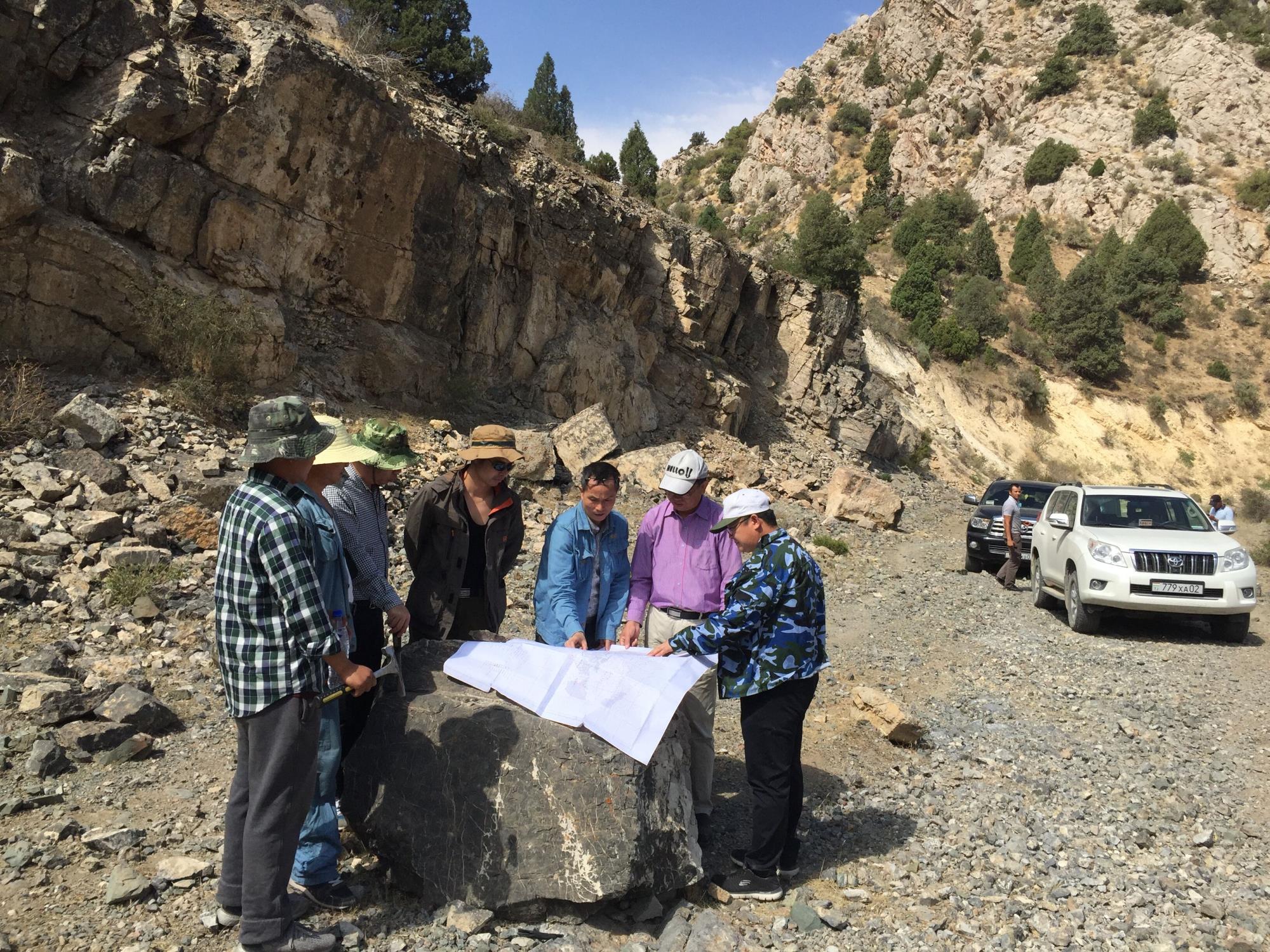 公司技術人員在塔吉克斯坦阿爾登-托普坎礦田進行現場踏勘研討