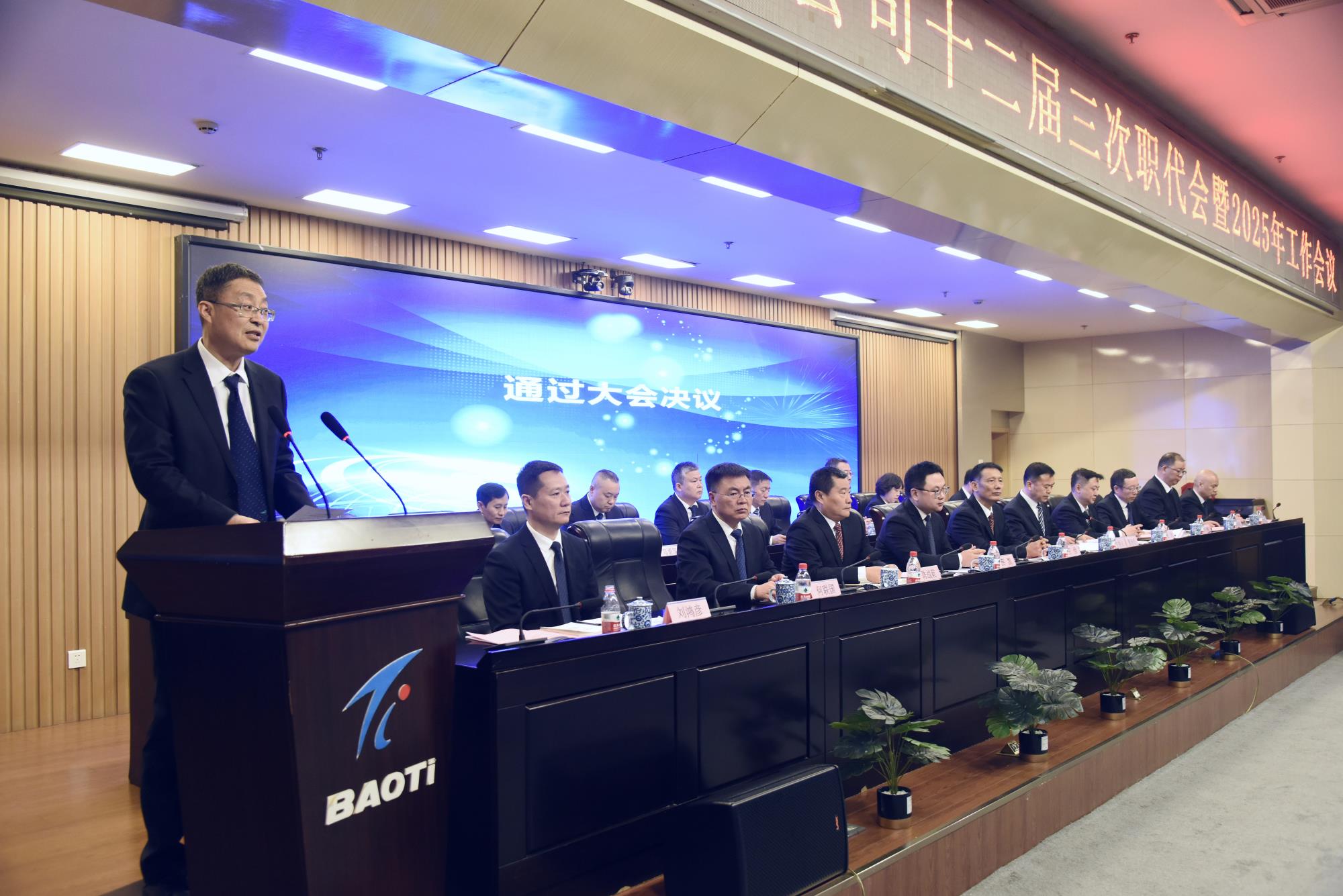 1月23日,寶鈦集團(tuán)十二屆三次職代會(huì)暨2025年工作會(huì)議順利召開。集團(tuán)黨委書記、董事長(zhǎng)、總經(jīng)理王儉作工作報(bào)告,黨委副書記、工會(huì)主席賀治民主持會(huì)議,黨委委員、副總經(jīng)理何聯(lián)國(guó)傳達(dá)上級(jí)會(huì)議精神。