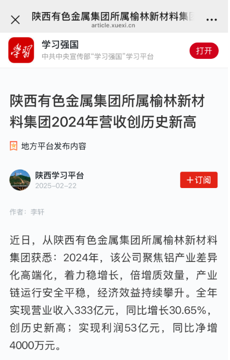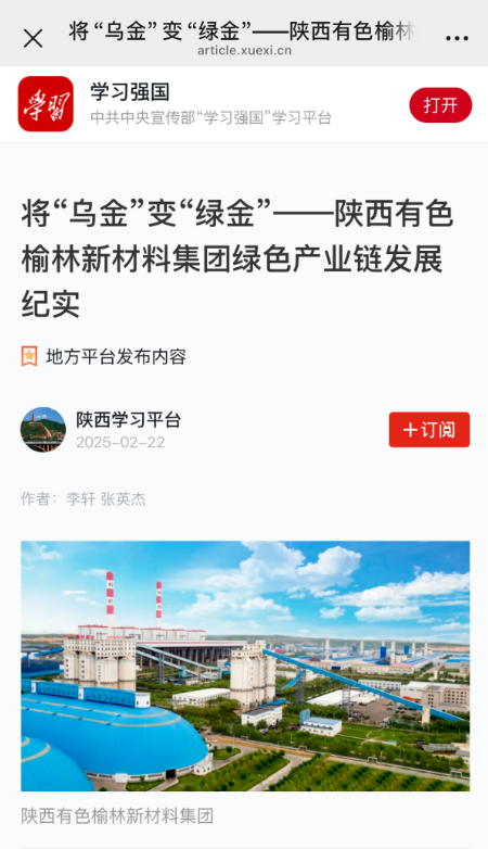 2月22日,中共中央宣傳部“學習強國”學習平臺連續刊發兩篇報道介紹了榆林新材料集團2024年生產經營和綠色產業鏈發展情況