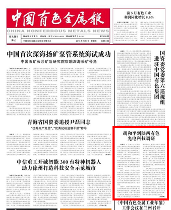 6月28日上午,陜西省省長胡和平在陜西有色集團董事長、黨委書記黃曉平陪同下到陜西有色光電科技有限公司調研指導工業穩增長工作。陜西省政府秘書長陳國強,省級有關部門及西咸新區有關負責人參加調研。