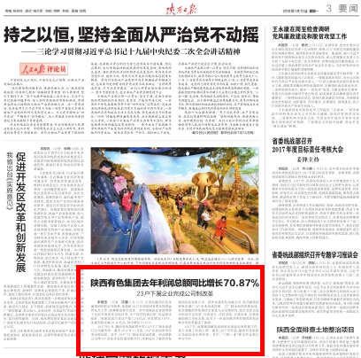 1月12日,記者從陜西有色金屬集團有限公司獲悉,該集團2017年深化國有資本投資運營試點工作,統(tǒng)籌推進各項改革。全年超額完成省國資委下達的年度改革目標(biāo)任務(wù),生產(chǎn)經(jīng)營持續(xù)向好,效益穩(wěn)步提升。集團完成工業(yè)總產(chǎn)值1256億元,同比增長3.69%,實現(xiàn)利潤總額10.26億元,同比增長70.87%。