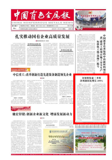 10月22日,金鉬股份(601958)披露了2018年三季報。報告期內,公司業績保持較高增長。前三季度,公司實現營業收入64.82億元,凈利潤為2.27億元,較去年同比增長499%。實現扣非凈利潤1.91億元,與去年同期相比增逾18倍。