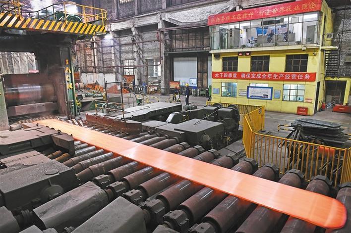 11月26日,工人在寶鈦集團寬厚板材料公司三米三熱軋生產線上作業。寶鈦集團有限公司是