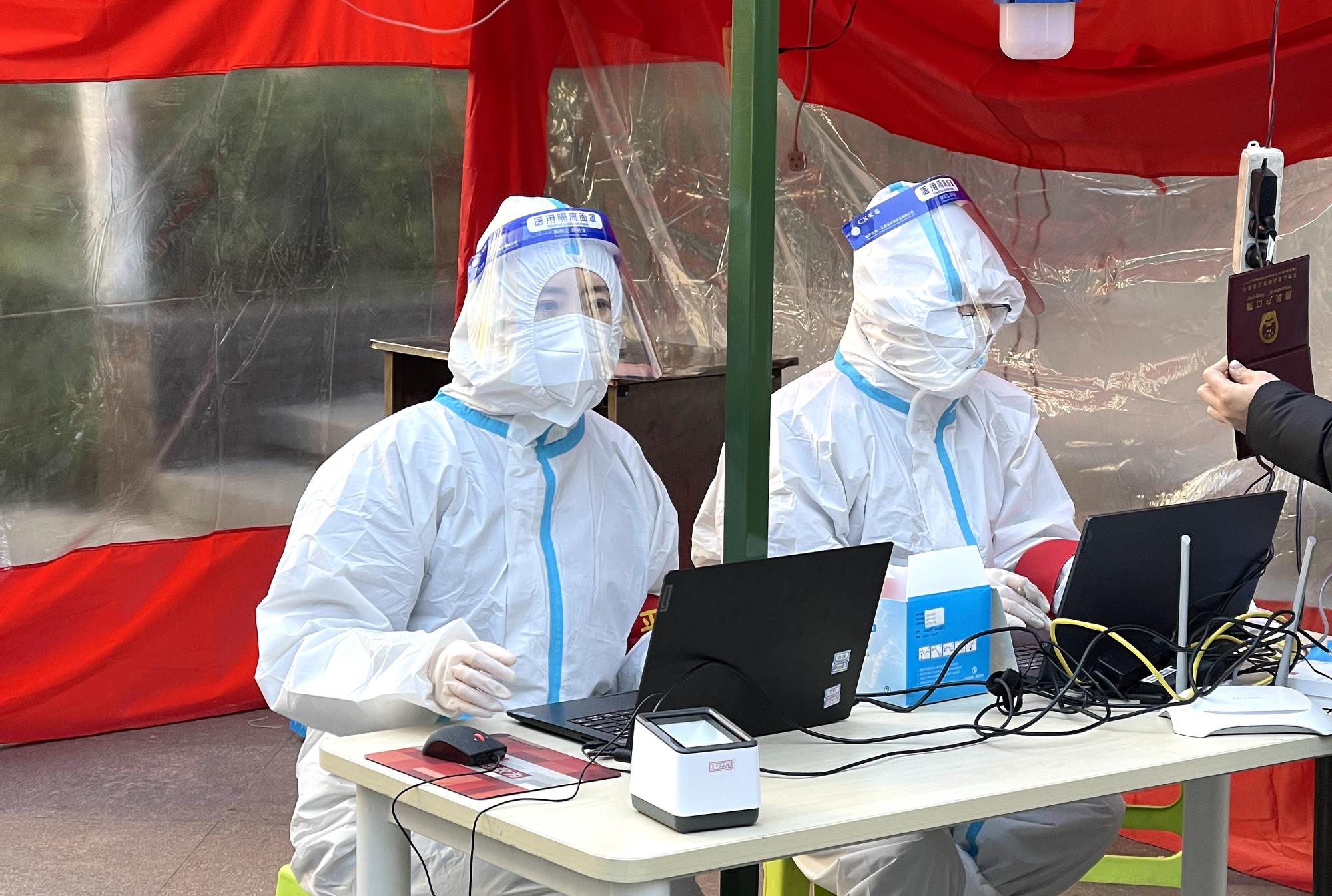 使命在心,再瘦弱的身體也能激發巨大能量;責任在肩,再艱險的路程也能無畏逆風前行。貿易公司黨群工作部副主任馬媛是第一批下沉干部中唯一的女性。29日一到社區就被分配去協助做核酸檢測的信息錄入、掃碼,因為天氣冷,穿著防護服坐在室外手腳非常凍。“有一個人掃碼時對我說,‘哎呀,這么冷的天,你們確實太辛苦了,謝謝你們’。我當時聽到這句話,心里頭特別感動,作為一個抗疫一線的工作人員更覺得很驕傲。”當天馬媛一共去了兩個小區,參與完成了1000多人的核酸檢測。防護服是去一次要穿一次,每次做完檢測后要脫掉,最后要進行消殺,拿酒精從頭到腳噴一遍。酒精噴出來的味道非常嗆,“我今天一共噴了三四遍,就是忍著那個酒精的嗆味,不小心噴到眼睛上,我的眼睛是根本睜不開的,很疼的呀,等那個疼勁兒散去后,眼睛整個都是紅的。所以覺得一線的抗疫人員真的很不容易。”