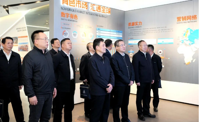 劉敬一行首先參觀了陜西有色金屬集團展廳,全面了解了集團公司發展歷程、產業規模、科技工作、主要產品等情況。