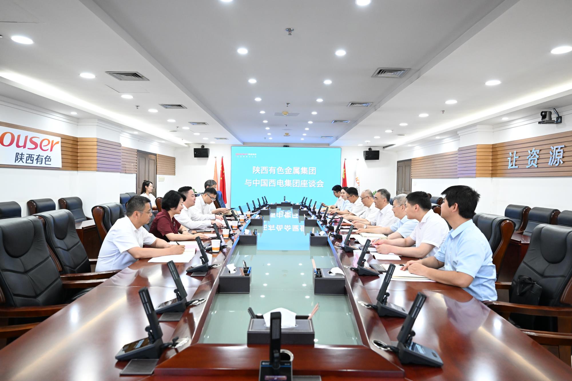 6月24日,陜西有色金屬集團黨委副書記、董事、總經理莫勇在集團總部與來訪的中國西電集團黨委副書記、董事、總經理韓兵一行座談交流。