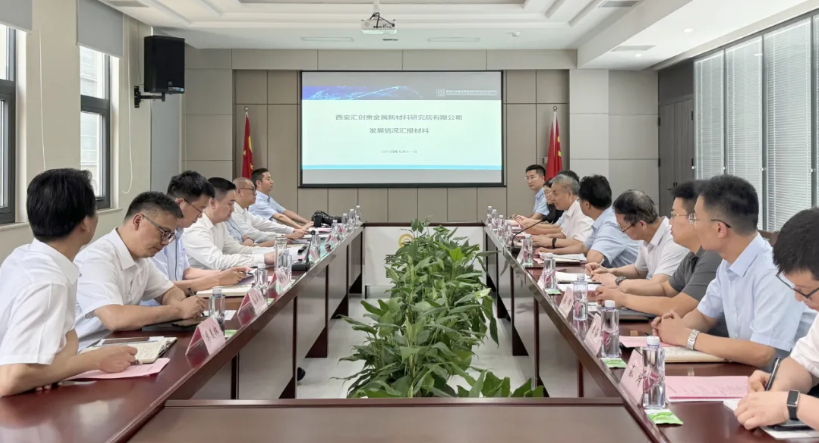 莫勇一行深入西安匯創公司產品展廳、掃描電鏡及3D打印表面處理室、貴金屬分析儀器室、貴金屬氫能催化研究室及金屬3D打印研究室現場了解企業發展和生產經營等情況,并同公司領導班子座談交流。