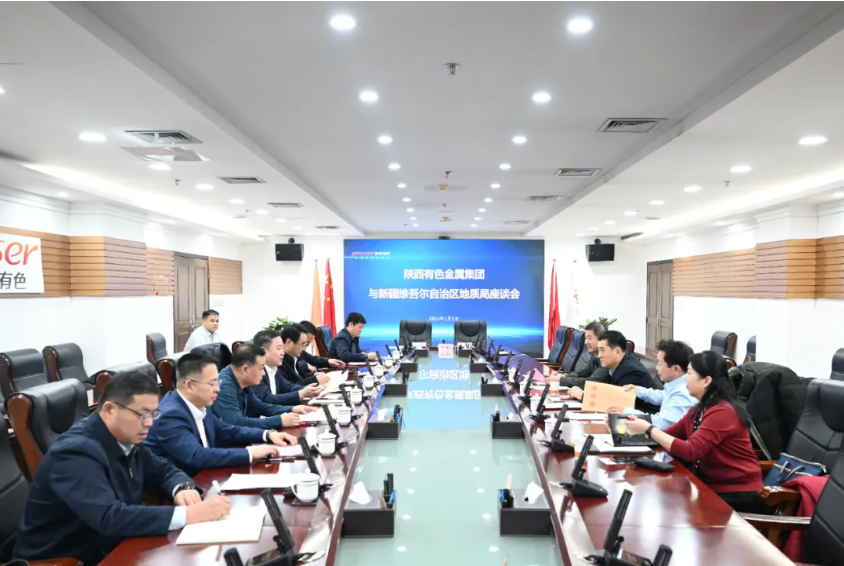 莫勇對黃雪偉一行到集團公司考察指導工作表示歡迎。他指出,陜西有色金屬集團在產業鏈、資金、科研等方面具有很強實力。集團公司“高舉高打”,將新疆作為另一個區域發展中心進行打造,已經形成了業務發展規劃,全方位深入開展合作。希望雙方加強信息交流,促成多種合作方式。黃雪偉感謝陜西有色金屬集團的支持。他說,在2025年的第一個工作日到集團公司座談交流,體現了區自然資源廳真誠的心態和急切的心情。此次座談是在上次雙方簽訂框架協議的基礎上達成的一致行動方案,提出了對自有礦權合作開發、空白地區勘察、空白區可礦調研等三大類20個項目的清單化合作方案,為雙方進一步深入合作奠定了堅實基礎。