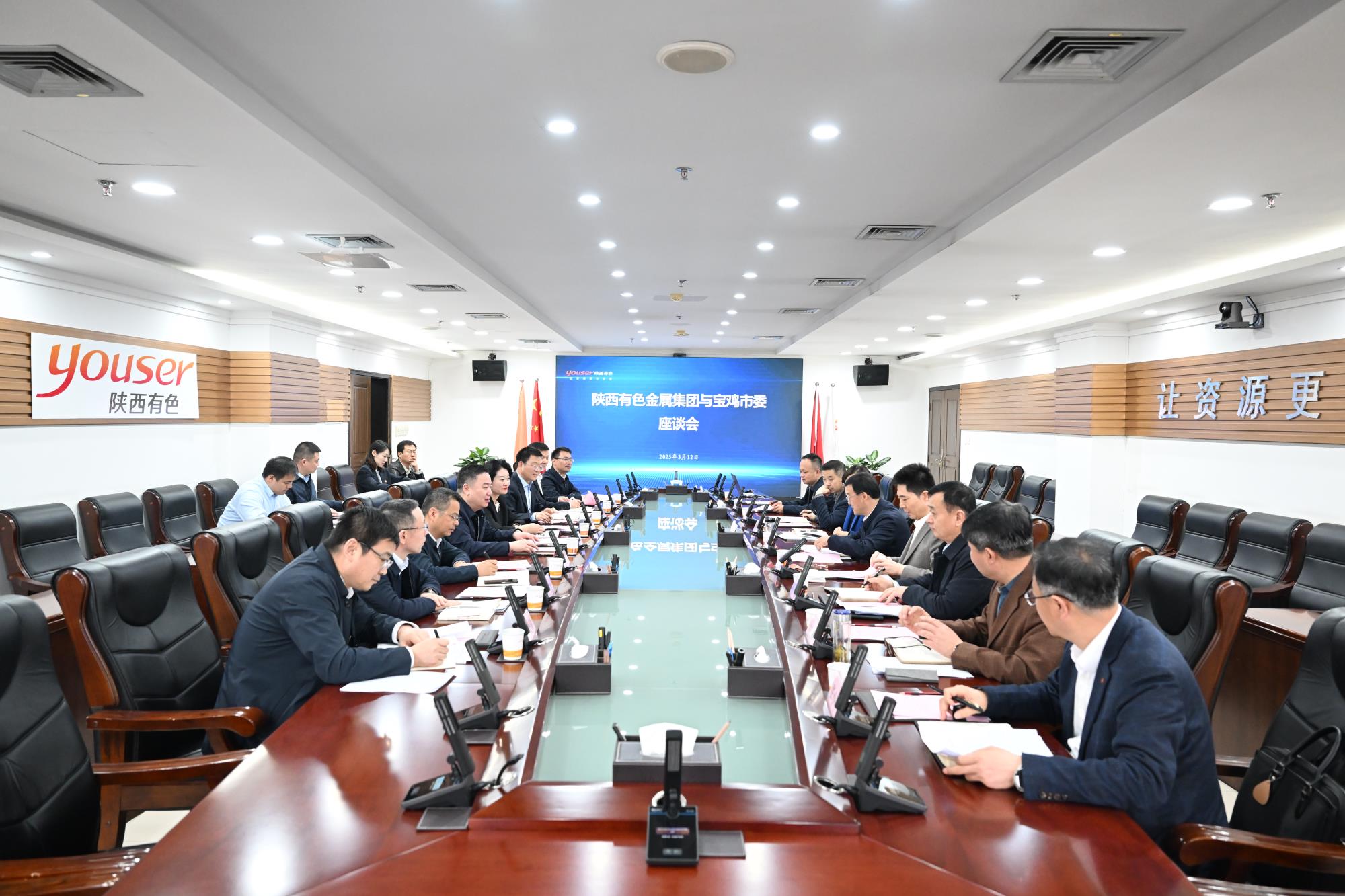 莫勇對段小龍一行到訪表示歡迎,并對寶雞市委、市政府長期以來對陜西有色金屬集團改革發(fā)展給予的支持和幫助表示感謝。莫勇介紹了集團公司歷史沿革、發(fā)展現(xiàn)狀及未來的產(chǎn)業(yè)布局等總體情況。他表示,陜西有色金屬集團堅持“材裝并進、高端綠色”主業(yè)新定位,努力實現(xiàn)倍增計劃及重點項目產(chǎn)業(yè)鏈延鏈、補鏈、強鏈戰(zhàn)略,集團公司將結(jié)合現(xiàn)有的鈦、鉛鋅、鎂等產(chǎn)業(yè)優(yōu)勢,配合寶雞已有的產(chǎn)業(yè)綜合優(yōu)勢,積極在寶雞市謀劃布局相關產(chǎn)業(yè)。莫勇要求集團有關部門認真做好與寶雞市有關部門的工作對接,盡快使雙方合作取得實效。