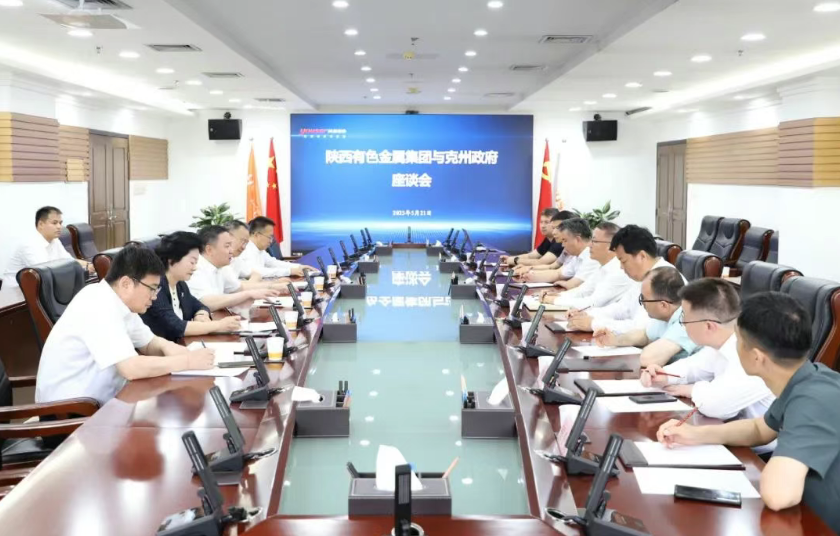 5月21日,陜西有色金屬集團黨委副書記、董事、總經理莫勇與新疆克州黨委副書記、州長吾肉孜阿力·哈西哈爾巴依一行在集團總部座談交流。集團公司黨委委員、副總經理黃忠良參加座談。