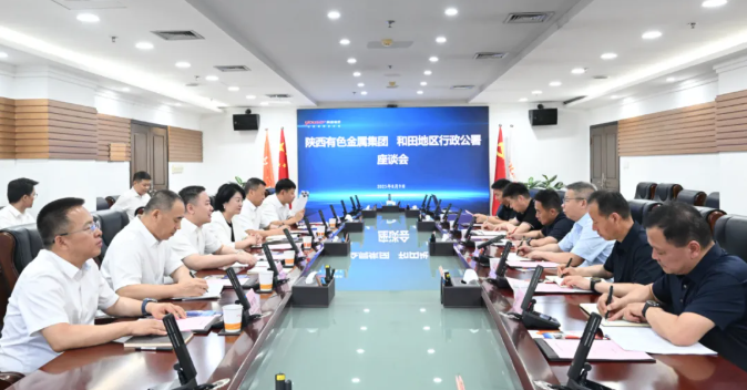 8月9日,陜西有色金屬集團黨委副書記、董事、總經理莫勇在集團總部與新疆維吾爾自治區和田地委委員、行署常務副專員曾冠軍一行就進一步深化有色金屬礦產資源合作、共謀高質量發展座談交流。