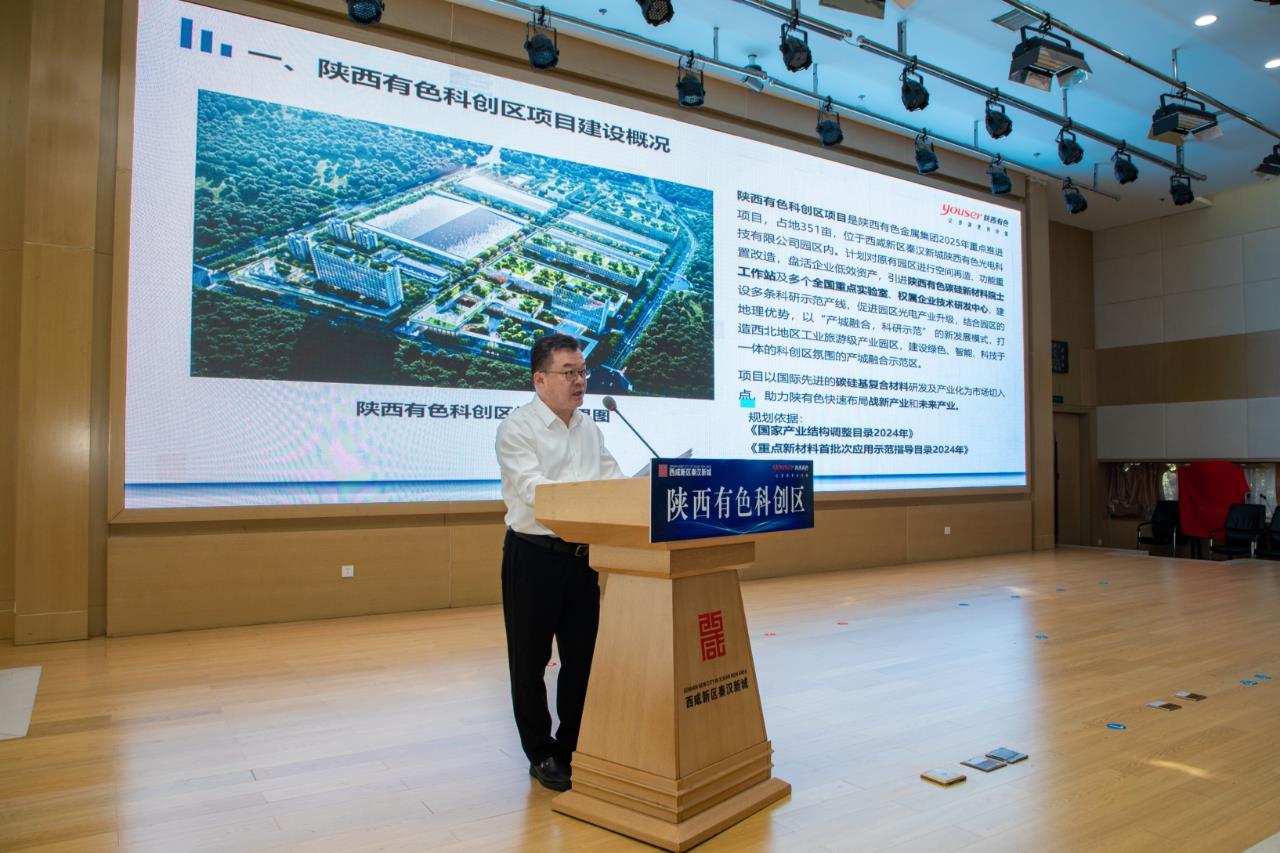 集團公司副總經理蘇旭盛就科創區項目的整體規劃、入駐項目情況及后續推進計劃作了詳細介紹,指出陜西有色科創區項目瞄準戰新產業和未來產業,以國際先進的碳硅基復合材料研發及產業化為市場切入點,通過空間重構、功能升級與技術創新,建設研發實驗室、中試車間及院士工作站,構建“產學研用”一體化平臺,建設綠色、智能、科技于一體的產城融合示范區。陜西有色科創區項目是集團公司響應國家創新驅動發展戰略、布局戰略性新興產業、未來產業的重要舉措,項目的落地將成為集團公司高質量發展的新引擎,對于推動秦漢新城新材料產業延鏈補鏈強鏈、打造先進制造業高地具有重要意義。