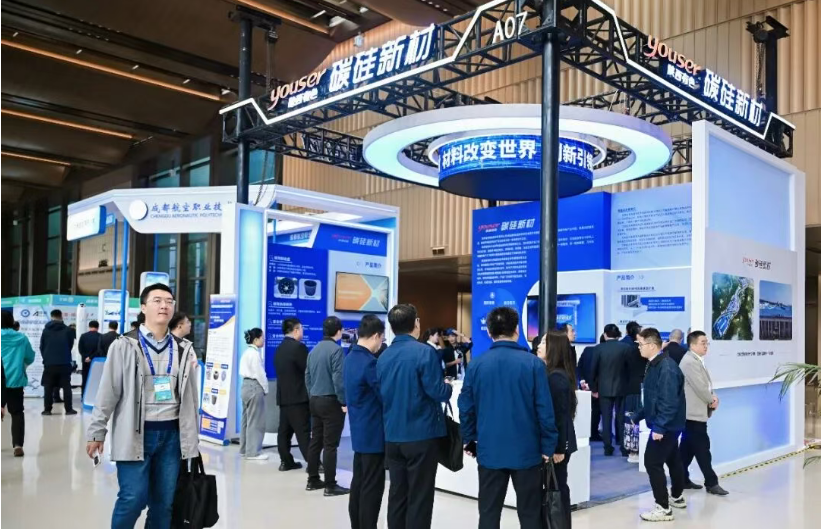 近年來,陜西有色金屬集團深化改革創新,以“著力科技自立自強,建設現代產業體系”為著力點,錨定“千百十一”高質量發展階段性目標,轉型升級傳統產業,培育發展戰新產業,前瞻布局未來產業。本次參展,碳硅新材以“碳硅筑新,智領未來”為核心主題,深度融合企業技術基因與產業特性,展出中間相瀝青基碳纖維及其復材、高性能樹脂、金屬基復材、碳陶剎車盤、碳陶熱場、超韌氧化鋁粉體、高純碳化硅粉體等37件戰新類產品。通過視覺呈現、互動體驗等多維度協同,打造“沉浸式技術展示+精準化合作對接”的創新展出形式,受到復合材料行業專家一致好評,吸引了眾多行業從業者參觀駐足,有效提升了陜西有色品牌識別度。參展產品體現了碳硅新材與國內知名高校院士專家團隊的深度合作,不僅性能優勢顯著,更具備成熟的產業化落地能力,充分彰顯“技術引領、產研融合”的發展特色。