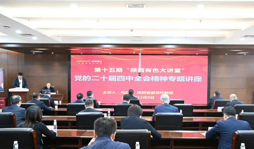 為全面深入學習領會黨的二十屆四中全會精神,引導黨員干部職工把思想和行動統一到全會精神上來,將學習成效轉化為思想解放、創新擔當的強大動力,轉化為高質量轉型升級的強大動能,轉化為奮進“千百十一”產值倍增階段性目標和“高新材料新名片”打造長遠目標的具體舉措。12月9日,陜西有色金屬集團黨委根據省委理論講師團“菜單式”專題宣講要求,舉辦第十五期“陜西有色大講堂”,特邀省委黨校(陜西行政學院)管理學部教授馬紅光作《學習貫徹黨的二十屆四中全會精神 奮力開創中國式現代化建設新局面》專題講座。