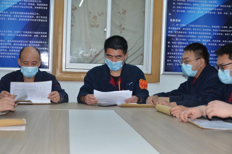王敏充分發揮“傳、幫、帶”作用,注重提高班組全員的整體技能水平。對班組大學生,王敏耐心地將自己多年積累的實踐經驗、技術毫無保留地傳授給他們,先后為熱軋帶出多名技術水平一流的骨干人才。其中,陳冬已在熱軋擔任班長并被評為技師,戴少勇獲得2018、2019年度寶雞市青年崗位技術能手稱號。2019年,王敏積極參與籌建板材勞模工匠室,利用PPT教學、生產現場實操等新型培訓方式提升全員技術水平,成功解決某純鈦醫用板料軋制難題,有效提升該型號附加值產品成品率。2019年,熱軋丁班在分廠主辦的熱軋工序“質量金杯”競賽中不畏強手,各項技術指標獲得第一名,贏得板材廠各部門的廣泛贊譽和好評。