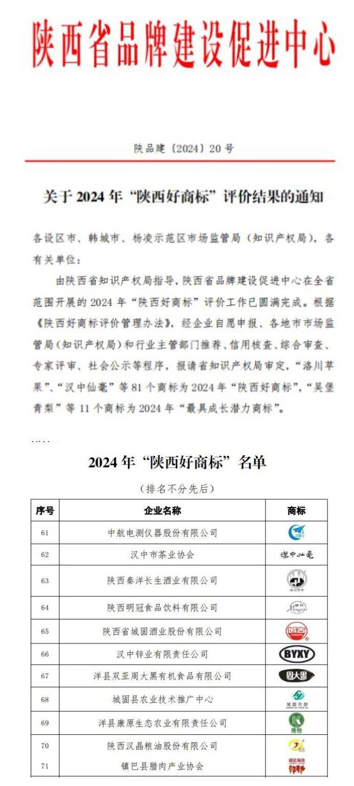 據(jù)悉,2024年“陜西好商標(biāo)”評選由陜西省知識產(chǎn)權(quán)局指導(dǎo),通過企業(yè)申報、各地市場監(jiān)管部門推薦、信用核查、綜合評審和社會公示等嚴(yán)格程序,最終,包括“BYXY”“漢中仙毫”等81個商標(biāo)榮獲“陜西好商標(biāo)”稱號。