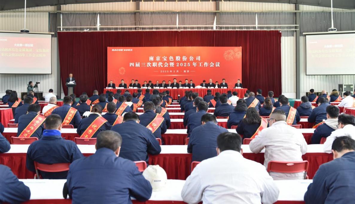 經過前期預備會議,2月8日下午,寶色股份召開四屆三次職代會暨2025年工作會議。集團黨委委員、副總經理,寶色股份黨委書記、董事長薛凱出席會議并講話;黨委副書記、總經理劉鴻彥作工作報告;副總經理、工會主席胡兵主持會議。