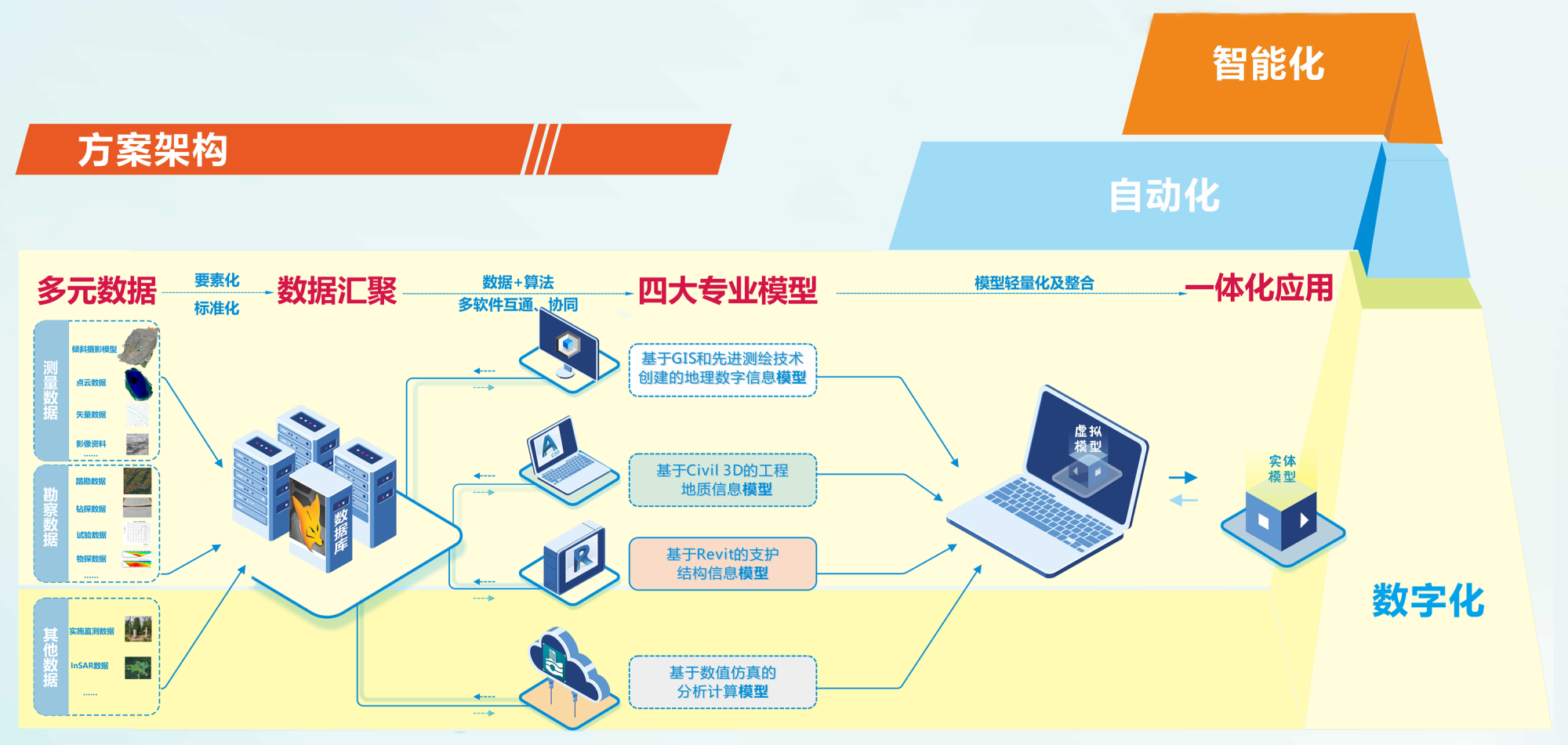 該方案以工程數據中心為核心,創新性地集成了地質信息模型、結構分析模型、施工模擬模型和運維監測模型四大數字化模塊,實現了從數據采集、模型構建到智能應用的完整閉環。經多個重大項目驗證,該技術使巖土工程方案設計效率提升40%,施工風險預警準確率達92%,有效解決了傳統工程中數據孤島、協同困難等痛點問題。