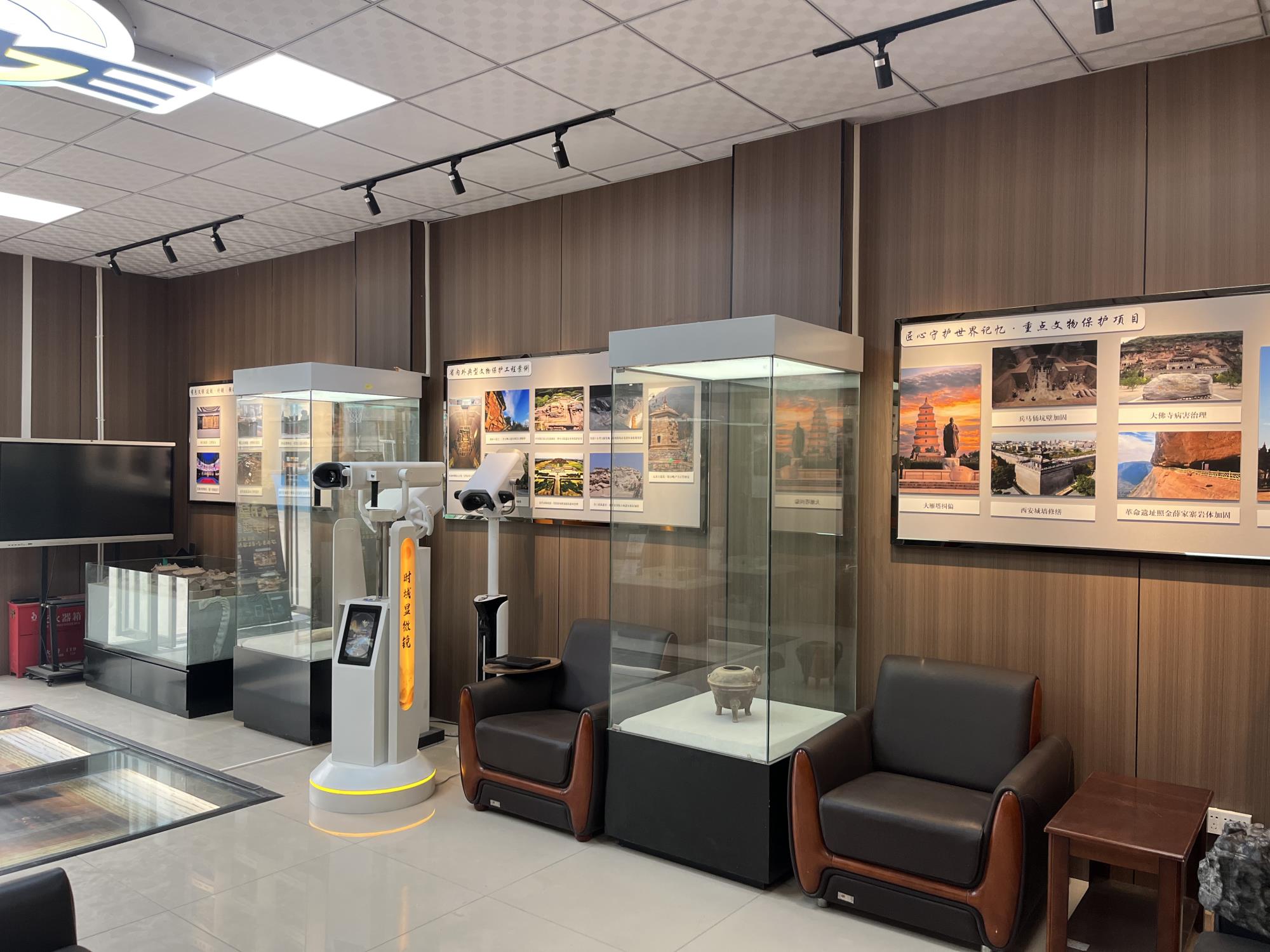 展廳占地約50平方米,5塊精心設計的展板與7個獨具匠心的展柜錯落有致,近10件文創產品風格各異,全方位呈現了公司在傳統巖土文物保護、文物遷移、文物展陳利用、文物保護數字化等多個領域的豐碩成果與創新實踐,串聯起公司文保產業的全鏈條發展脈絡。展廳還利用3D掃描、虛擬現實(VR)、增強現實(AR)以及高清投影等數字化設備等,為展陳提供了有力技術加持。借助現場操作演示,原本靜置于展廳的壁畫、模型被賦予新“生命”,在虛實交織中煥發新的活力。