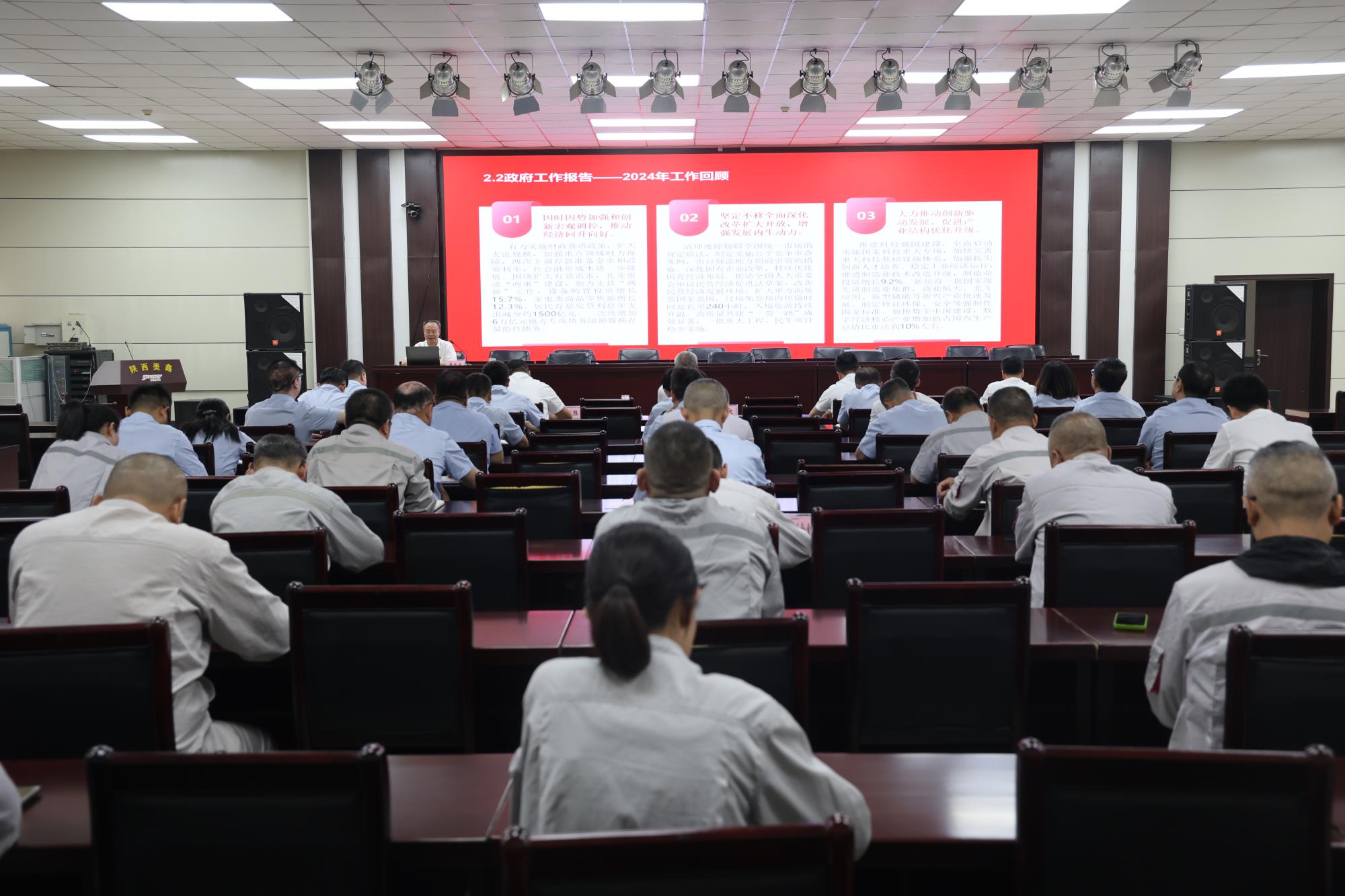 宣講設陜西美鑫主會場,陜西美鑫公司領導班子成員,機關各部門負責人;二級單位黨組織負責人、綜合辦公室主任、黨務專責;鋁鎂合金分公司電解二車間黨員代表現場聆聽宣講。榆林新材料集團、天瑞硅材料兩個分會場視頻參會。