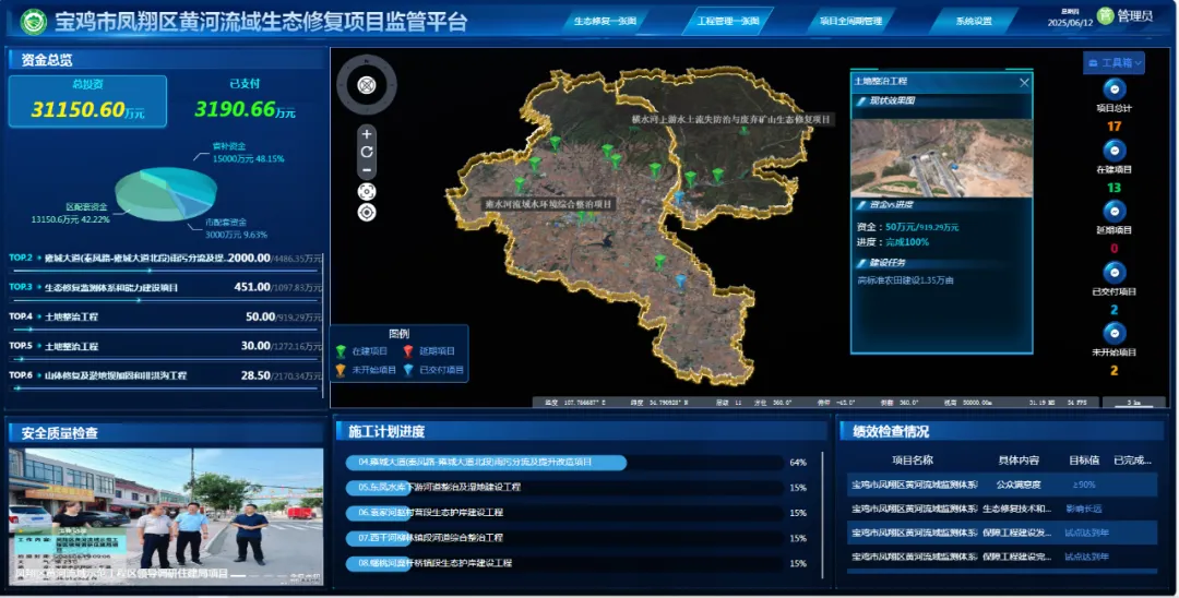 近日,由中國有色金屬工業(yè)西安勘察設計研究院有限公司(以下簡稱"西安勘察設計院")聯(lián)合北京江云智能科技有限公司共同研發(fā)的"寶雞鳳翔區(qū)黃河流域生態(tài)修復項目監(jiān)管平臺"成功上線運行。