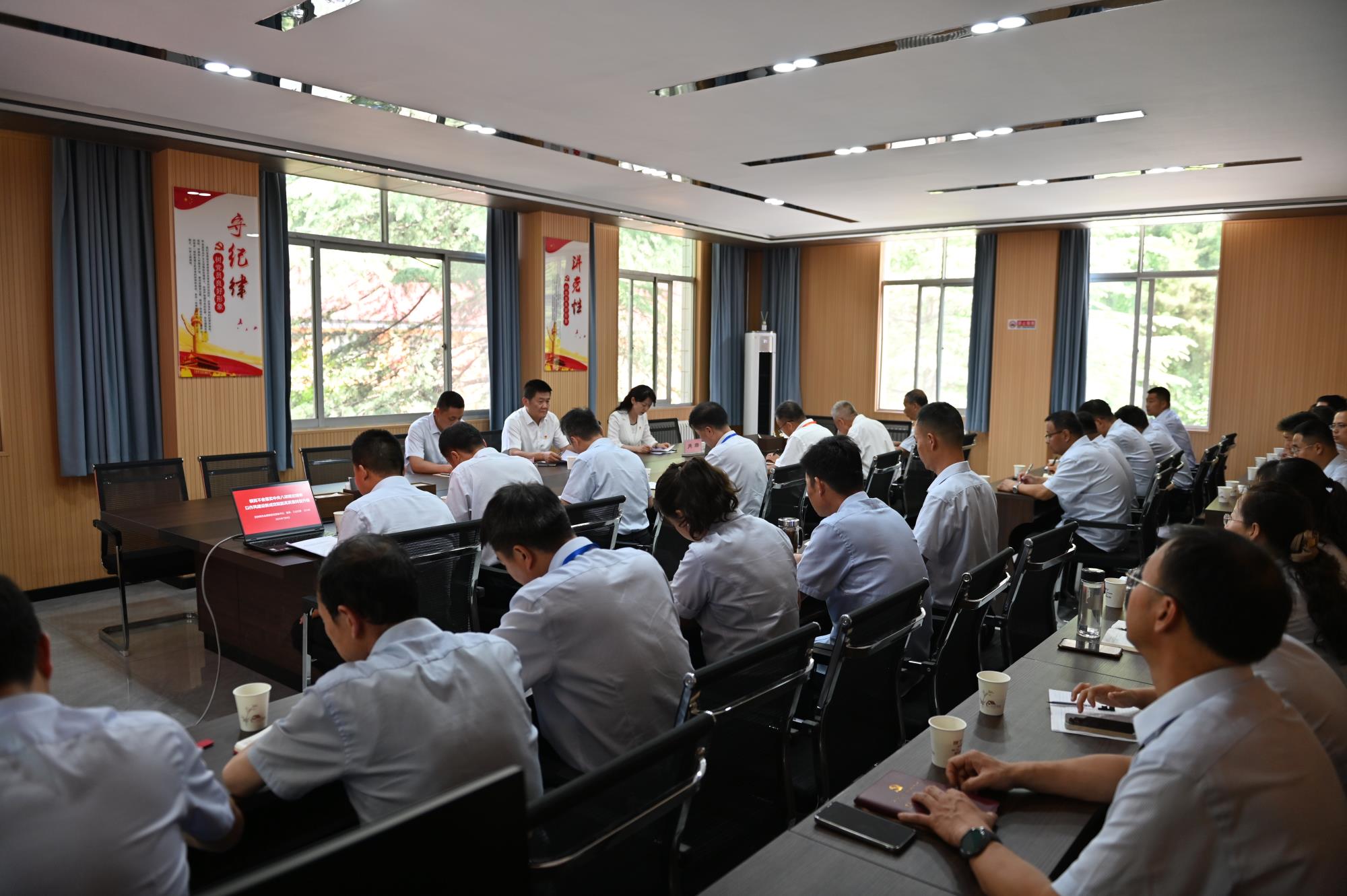 陜西有色金屬集團(tuán)黨委宣傳部(企業(yè)文化部)有關(guān)同志,鉛硐山礦業(yè)公司領(lǐng)導(dǎo)班子成員、中層干部及部分黨員代表聆聽黨課。