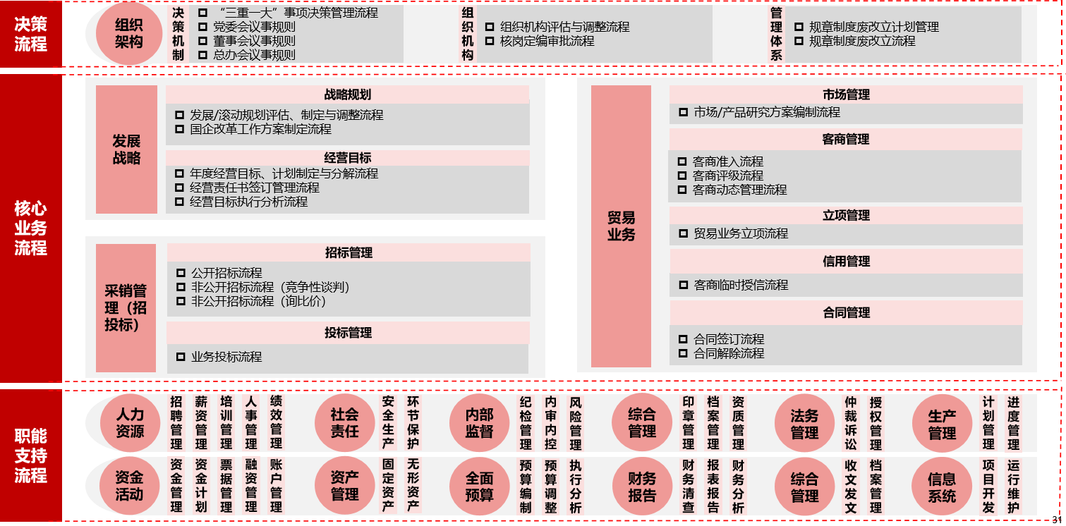 公司以“流程地圖”與“風(fēng)險(xiǎn)防線”雙輪驅(qū)動(dòng),夯實(shí)內(nèi)部控制底座。一方面,依托《內(nèi)部控制管理手冊(cè)》,沿著“管理制度化、制度流程化、流程表單化、表單信息化”的主線,將組織架構(gòu)、人力資源、資金活動(dòng)、貿(mào)易業(yè)務(wù)等關(guān)鍵領(lǐng)域全部納入分級(jí)流程框架,用端到端流程圖標(biāo)明主責(zé)部門、起始節(jié)點(diǎn)、關(guān)鍵表單和審批要點(diǎn),配套權(quán)限指引,把隱性流程顯性化、零散流程系統(tǒng)化,成為業(yè)務(wù)運(yùn)行的“導(dǎo)航圖”和后續(xù)信息化的藍(lán)本。另一方面,緊扣中央貿(mào)易“十不準(zhǔn)”,以“誰經(jīng)營(yíng)、誰負(fù)責(zé)”為準(zhǔn)繩,發(fā)布《貿(mào)易業(yè)務(wù)風(fēng)險(xiǎn)指引》,用一張“全景圖”貫通風(fēng)險(xiǎn)識(shí)別、評(píng)估、應(yīng)對(duì)、監(jiān)督:先識(shí)別戰(zhàn)略、市場(chǎng)、信用、合規(guī)、操作等關(guān)鍵風(fēng)險(xiǎn),再厘清管理界面、業(yè)務(wù)模式、制度框架與權(quán)責(zé)分工,將計(jì)劃、市場(chǎng)、客商、采銷等核心環(huán)節(jié)嵌入流程,并統(tǒng)一檔案目錄,實(shí)現(xiàn)業(yè)務(wù)留痕、風(fēng)險(xiǎn)可追溯。流程與風(fēng)險(xiǎn)兩大體系相互映射、動(dòng)態(tài)聯(lián)動(dòng),風(fēng)險(xiǎn)管理由事后補(bǔ)救變?yōu)槭虑皩?dǎo)航,為企業(yè)高質(zhì)量發(fā)展提供實(shí)時(shí)預(yù)警、精準(zhǔn)糾偏的“安全駕駛艙”。