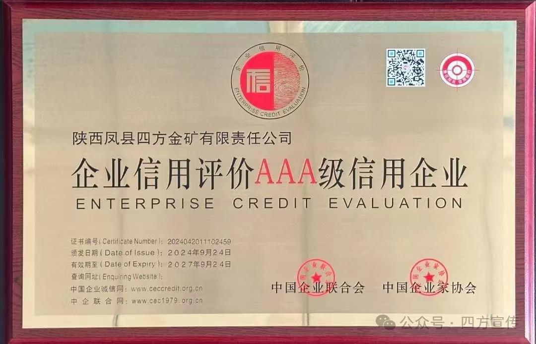 近日,中國有色金屬工業(yè)協(xié)會正式發(fā)布2025年度有色金屬行業(yè)企業(yè)信用等級評價結(jié)果,四方金礦成功獲評最高信用等級——AAA級,彰顯了業(yè)界對公司信用建設(shè)、穩(wěn)健運(yùn)營和綜合實(shí)力的權(quán)威認(rèn)可和高度肯定。