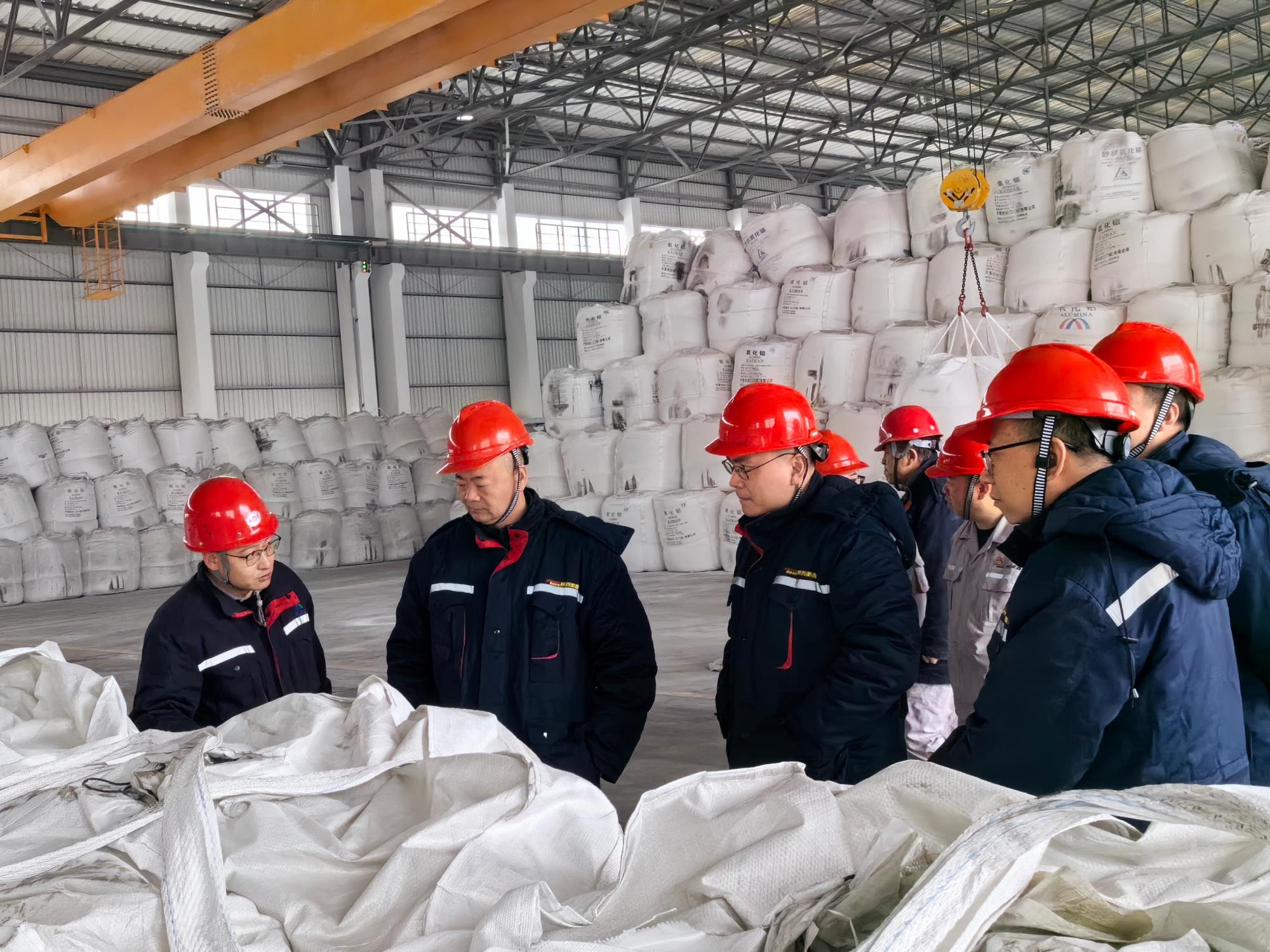 在鋁鎂合金分公司凈化供料車間氧化鋁倉庫,吳迪一行詳細詢問了氧化鋁原料的儲備、安全管理等情況,仔細查看物料存放環境與設備運行狀態,強調必須做到安全庫存、優質保供、管理精細。