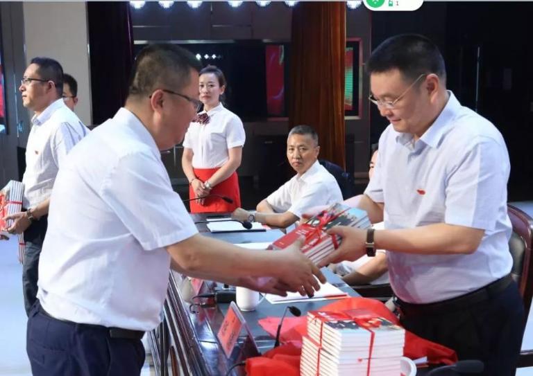 會上舉行了授書儀式,陳書記代表公司黨委向各二級黨委發放了紀實文學《梁家河》書籍。