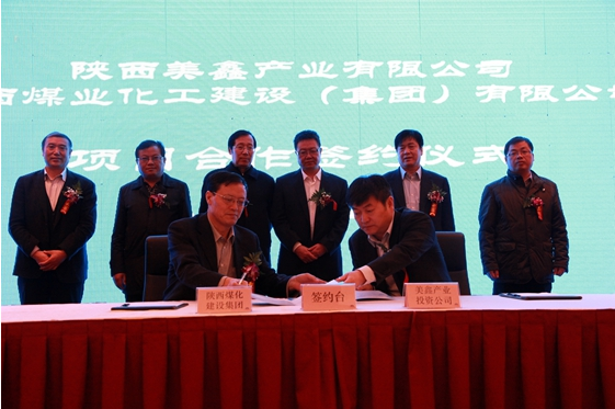 元月28日上午,陜西美鑫產(chǎn)業(yè)投資有限公司與陜煤化建設(shè)集團(tuán)在西安高新產(chǎn)業(yè)園簽訂項(xiàng)目合作開發(fā)框架協(xié)議。美鑫公司總經(jīng)理封建利、陜煤化建設(shè)集團(tuán)總經(jīng)理張超暉代表雙方進(jìn)行了簽字。