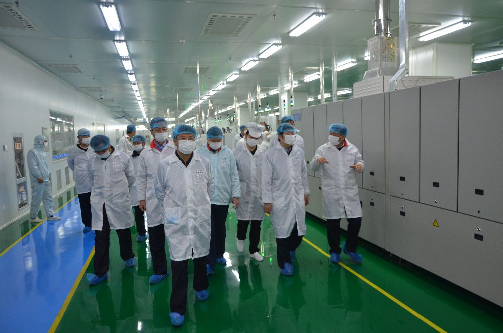 在乘車沿途參觀廠容廠貌并聽取范董事長、田總經理關于項目建設的基本情況介紹后,岳主任一行深入105電池事業部調研參觀。高效電池事業部是光電科技多晶、單晶電池片的關鍵工序生產線,擁有德國、荷蘭等國際一流的光伏自動化全套裝備。岳主任興致勃勃按工序順次仔細察看,叮囑陪同的新區和新城領導要全力支持公司做強做大做優,強調要高度重視省內市場拉動作用,在市場好的時候,一定要抓住機遇,鼓勵企業下決心上產線,加快產能釋放,早日達產達效,為新區經濟社會發展做出更大貢獻。