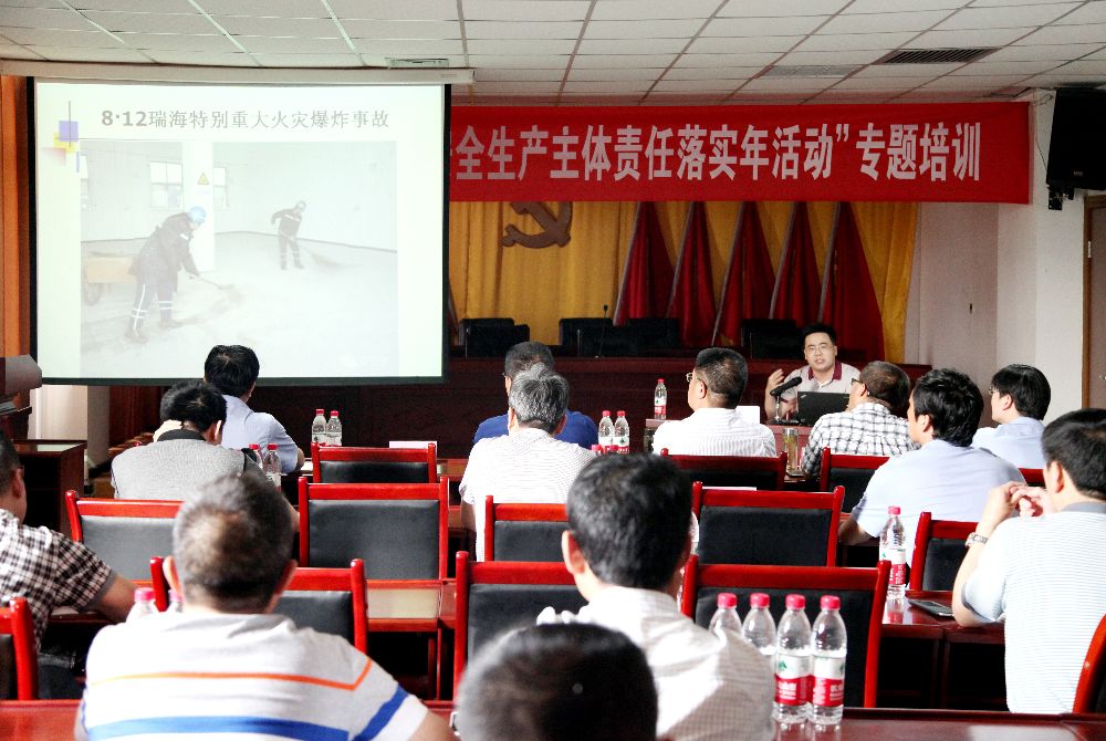 為積極響應集團公司“企業安全生產主體責任落實年活動”號召,按照公司“安全月”活動安排,進一步強化全員安全發展觀念,提升全員安全素質,6月13日上午,漢中鋅業有限責任公司聘請西安科技大學教授劉紀坤對管理人員進行了落實企業安全生產主體責任專題培訓。公司領導,各單位各部門副科級以上管理人員以及各車間專職安全員共計100余人參加了培訓。