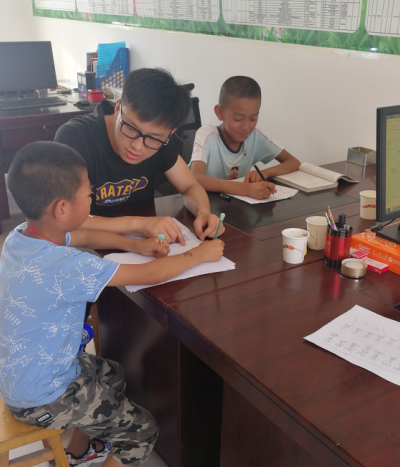 得知這一情況后,駐村工作隊決定在村上開辦暑期輔導班。隊員中楊威、呂金輝是本科畢業,王長江是研究生學歷,大家齊上陣,擔任義務輔導老師。同時,駐村隊長張濤了解到大寨村劉愛勤的小兒子李星良剛參加完高考的,成績遠超一本線,也動員他參與到輔導班的工作上來。大家一道為孩子們解答暑假作業中的難點、幫助孩子們進行新課程的預習。為了更好地為孩子們答疑解惑,輔導班還建立了微信群,為實現遠程課業輔導和家庭教育咨詢搭建了平臺。