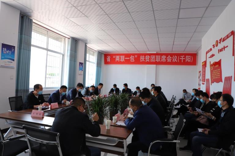 2020年4月26日,陜西有色扶貧團省級“兩聯一包”第一次聯席會在陜西有色千陽產業扶貧有限公司會議室召開,千陽縣扶貧辦、扶干辦相關負責人,扶貧團各成員單位分管領導、駐村隊員共30余人參加會議。會議由千陽縣政府副縣長楊軍輝主持,陜西有色集團扶貧辦主任、千陽扶貧公司黨支部書記、董事長艾軍參加會議并作了講話。
