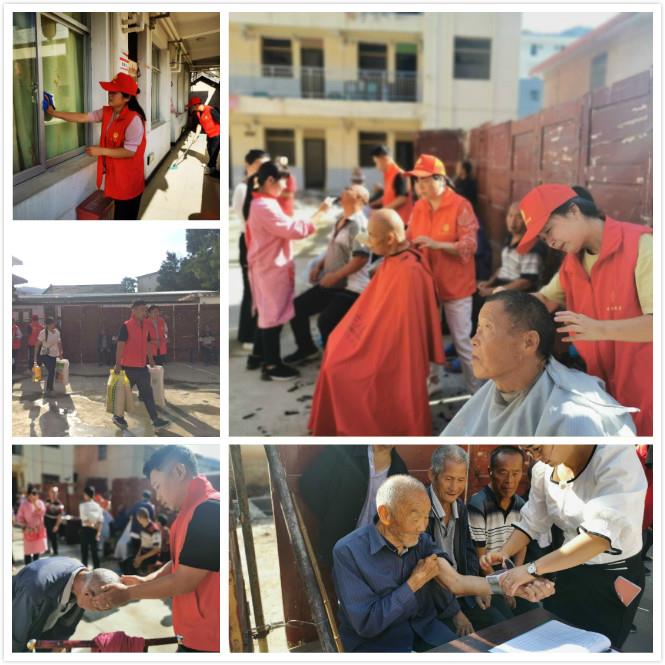 志愿者為敬老院送去了米面油、防疫物資和生活日用品,并聯系了當地醫務人員和理發師,為44名老人進行了血壓測量和理發。短暫的捐物儀式結束后,在“80”后院長裴麗艷的解說下,志愿者們參觀了老人們的宿舍、食堂和活動場所,傾聽她簡述小嶺鎮敬老院的發展歷程和工作開展情況。在測量血壓和理發環節,出現了部分老人行動不便、情緒緊張、甚至排斥的情況,在志愿者和工作人員的耐心幫助和疏導下,各項活動才平穩有序開展。打掃樓道、擦拭玻璃,為老人理發、洗頭、測血壓,與老人談心、拉家常,不大的院落到處“散落”著志愿者青春的身影,彌漫著一片溫馨、祥和的氣息。