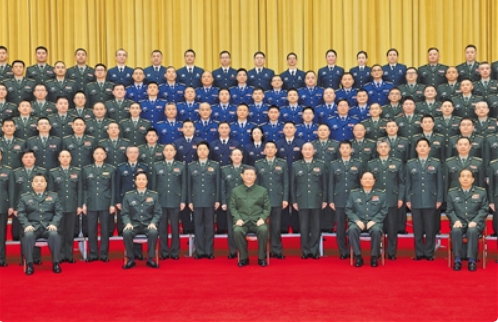 3月20日上午,習近平在長沙親切接見駐長沙部隊上校以上領導干部,代表黨中央和中央軍委向駐長沙部隊全體官兵致以誠摯問候,并同大家合影留念。張又俠陪同接見。